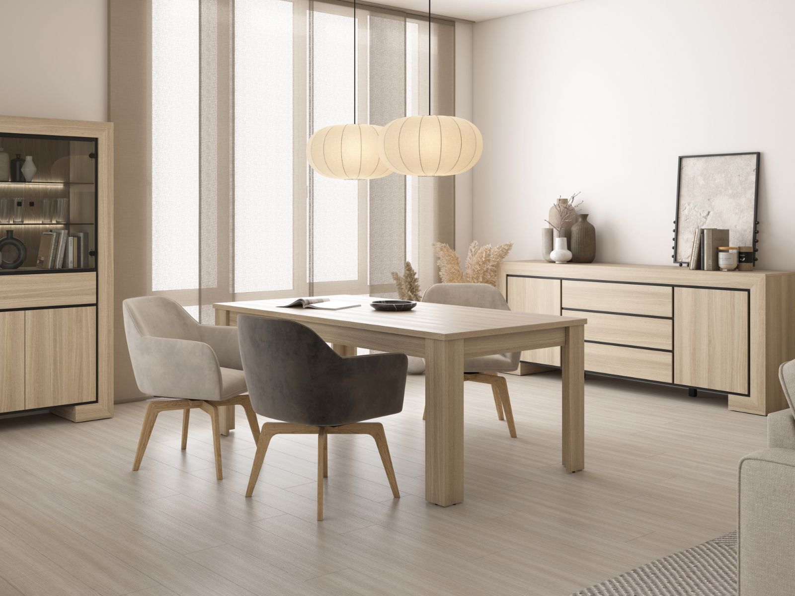 Op zoek naar een meubel met Scandinavische uitstraling? Ontdek dressoir CASTRO, de perfecte combinatie van minimalistische vormen, functionaliteit en elegante uitstraling. Deze dressoir brengt warmte in jouw interieur dankzij de elegante eik, terwijl de zwarte details zorgen voor een moderne touch. Niet alleen een lust voor het oog, maar ook bijzonder praktisch: dressoir CASTRO biedt volop opbergruimte met 2 deuren en 3 lades. Bekijk ook de andere meubelen uit de CASTRO-collectie en creëer een harmonieus en stijlvol interieur.