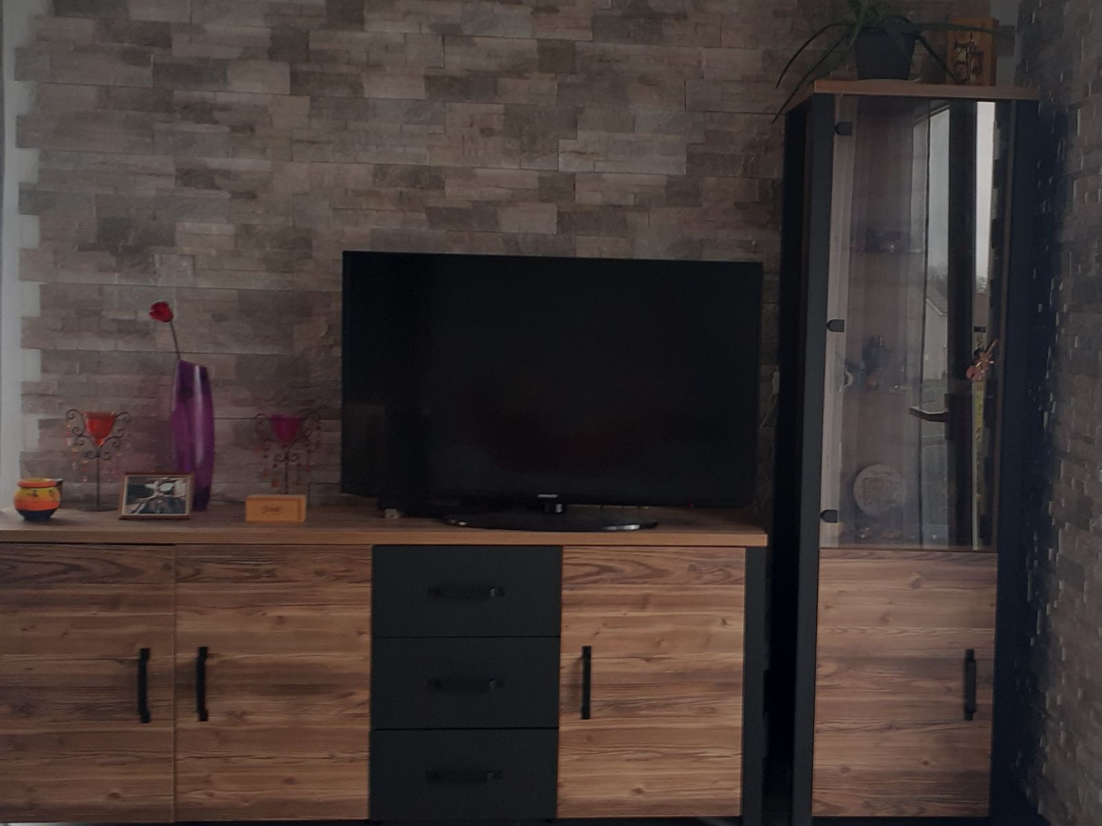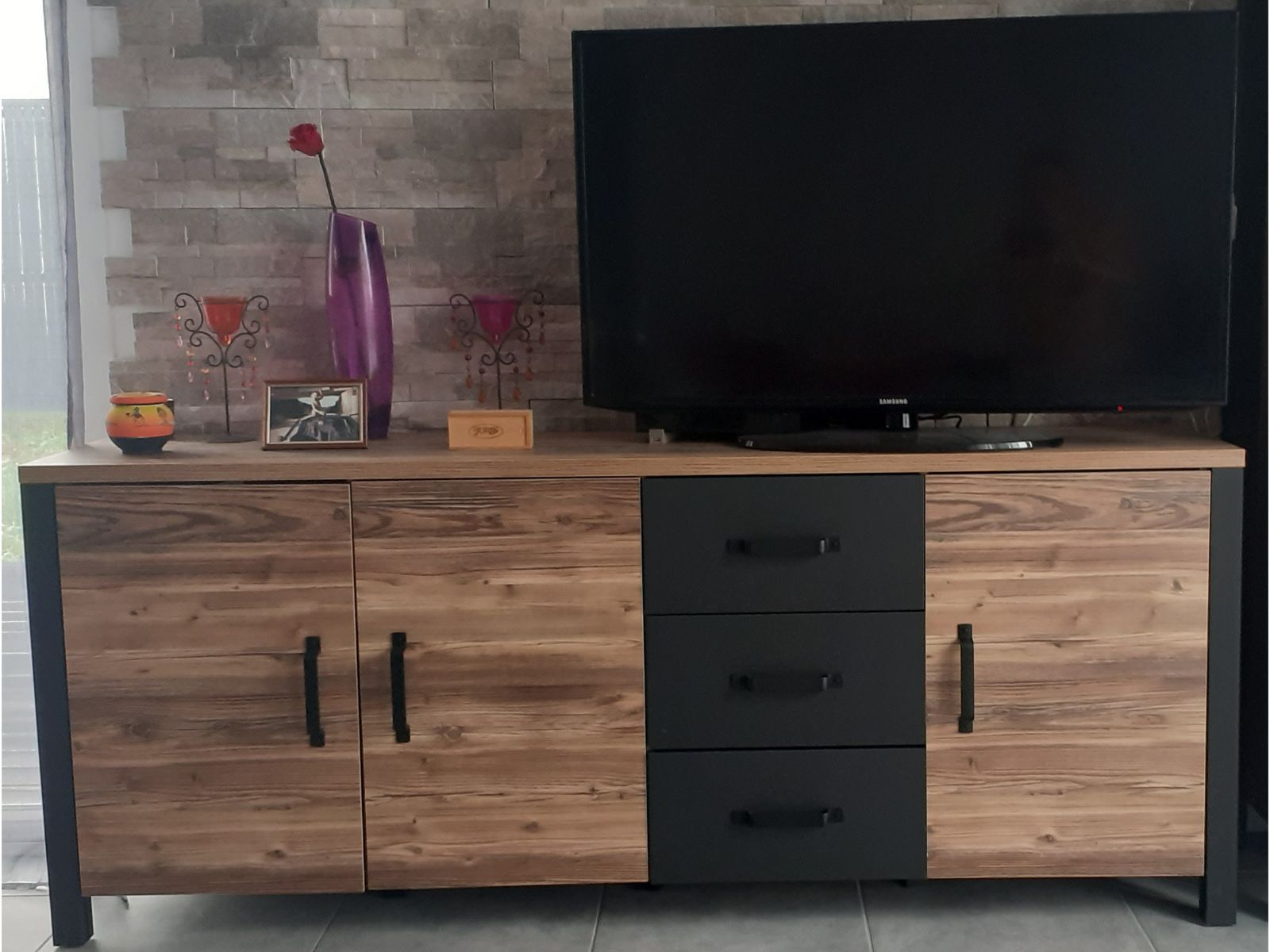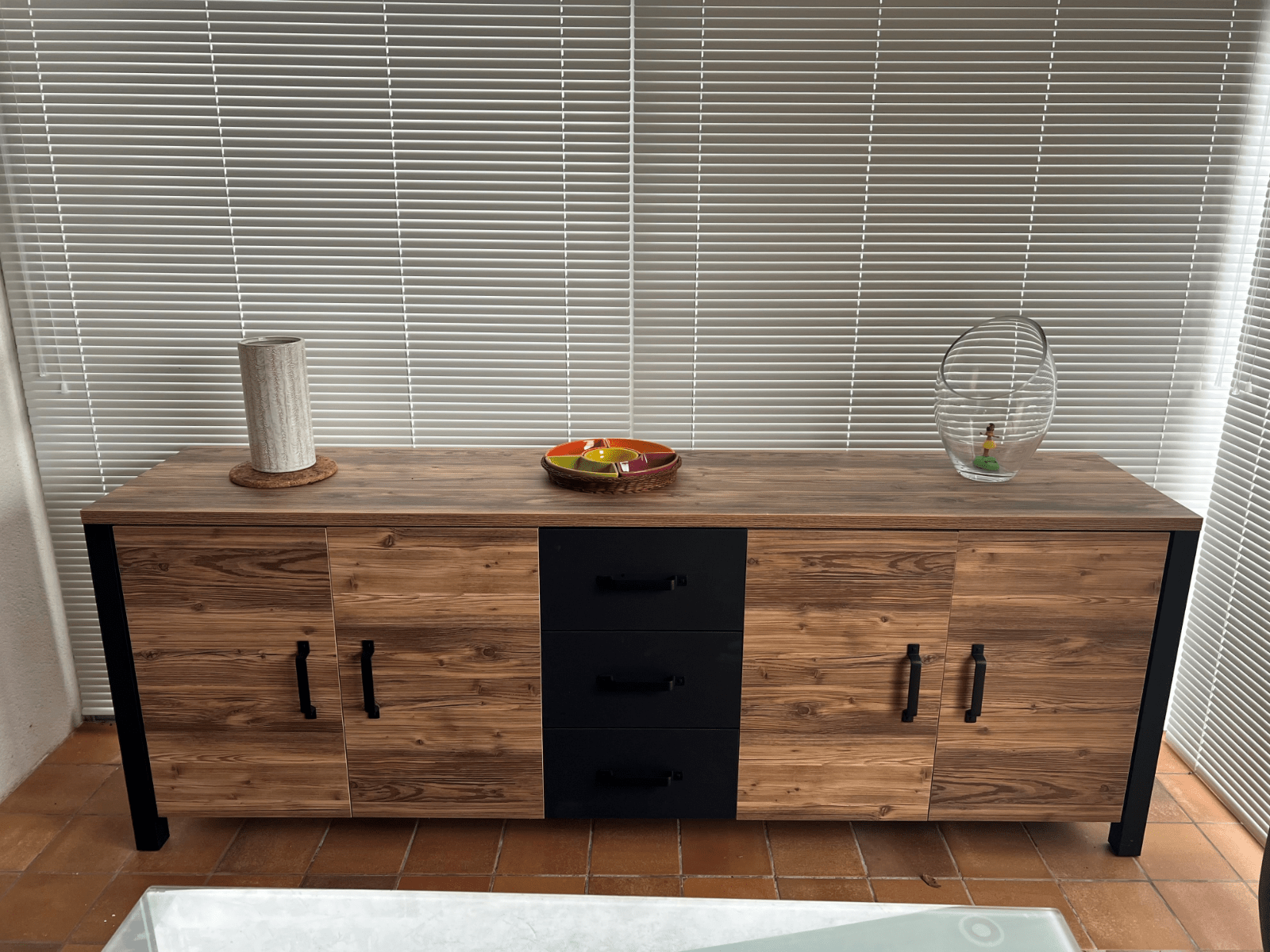 Vitrinekast OLIANNE 2 deuren 3 lades appenzeller sparren/zwart