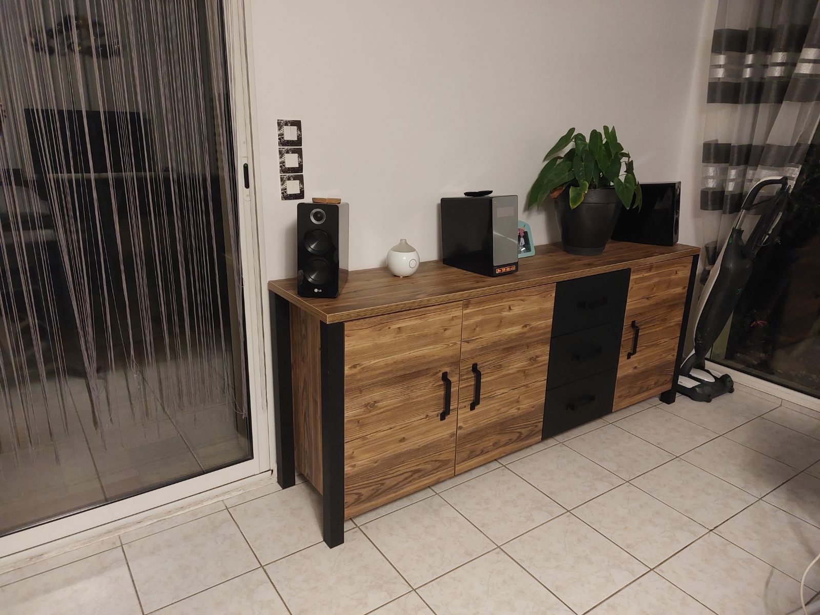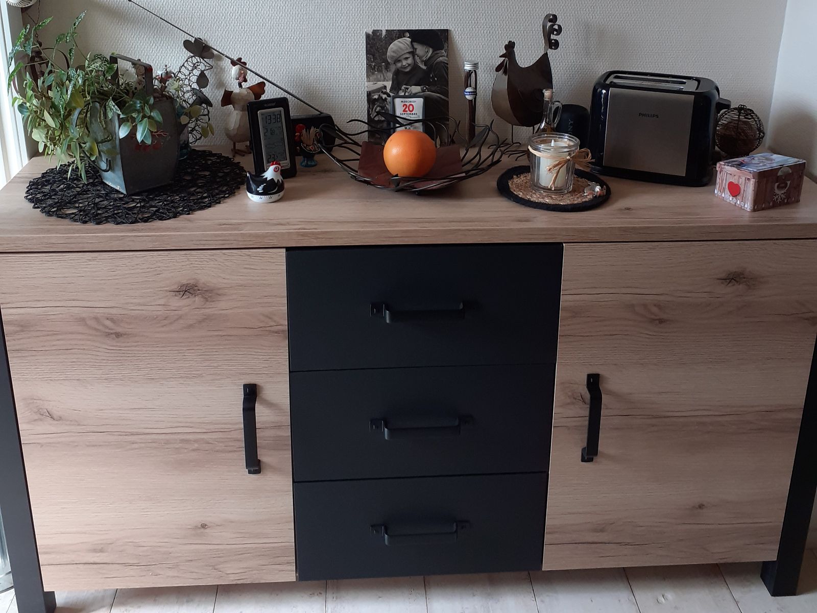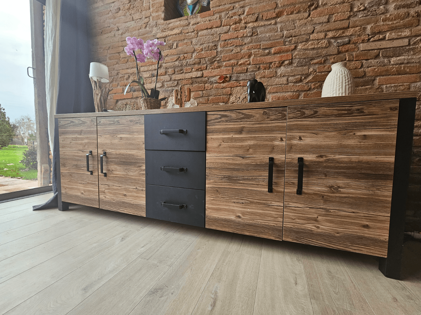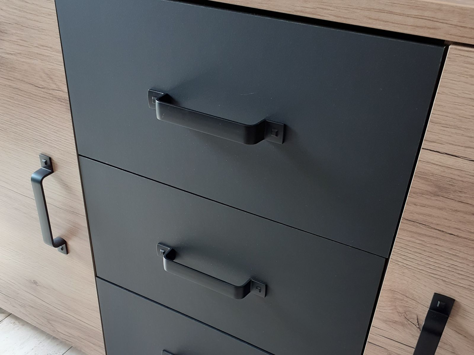 Hoge commode OLIANNE 3 deuren 3 lades appenzeller sparren/zwart