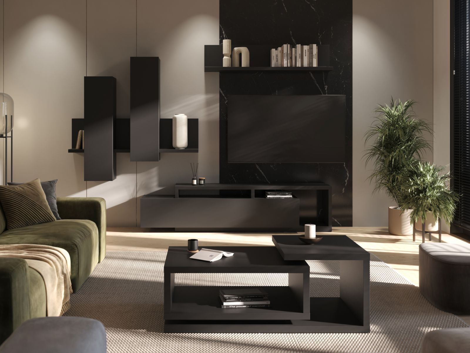 | Bestaat uit | 1 tv-meubel, 1 wandkast, 1 wandplank |